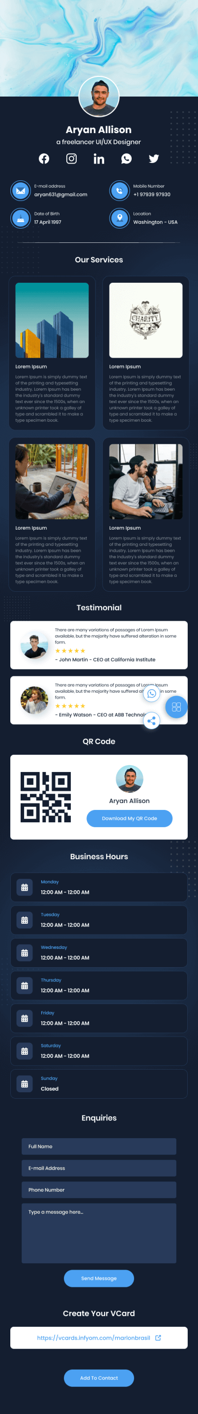 社交媒体影响者电子名片